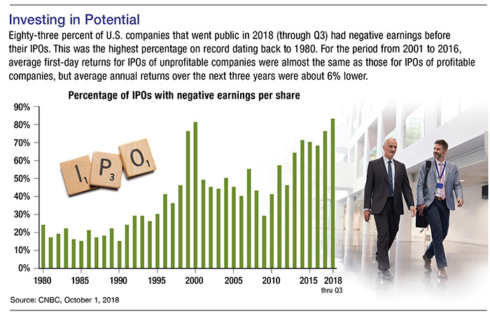 A young company may have a limited track record, and an established one might have to disclose more information to investors after it becomes publicly traded. If you’re interested in the stock of a newly public company, you should have a relatively high risk tolerance, because shares can be especially volatile in the first few months after an IPO. You might consider waiting until you can evaluate at least two quarters of earnings. Careful research is important for all investments, but recent IPOs may require a higher level of scrutiny.