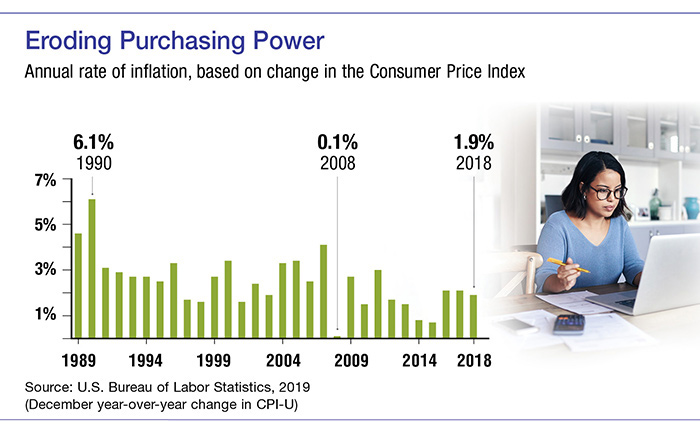 That still leaves an interest rate of 2.34%, but you should consider the purchasing power of the interest. Annual inflation was about 2% from 2016 to 2018, and the 30-year average was 2.5% (see chart). After factoring in the effect of inflation, the real return on your CD investment could approach zero and may turn negative if inflation rises. If so, you might lose purchasing power not only on the interest but also on the principal.